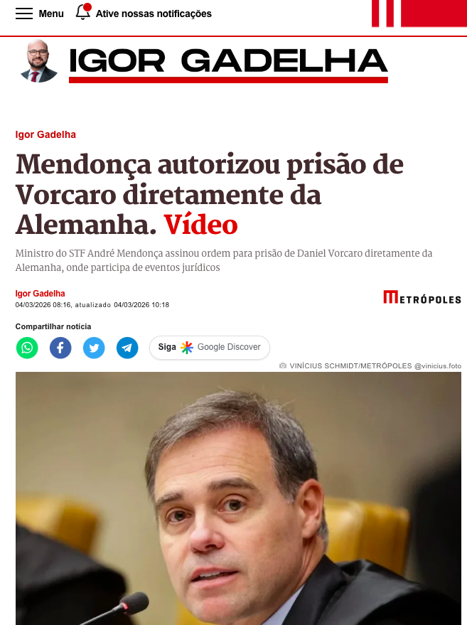 O ministro André Mendonça, do Supremo Tribunal Federal (STF), autorizou a prisão preventiva de Daniel Vorcaro, dono do Banco Master, diretamente da Alemanha, onde participa de eventos jurÃdicos desde o fim de semana.