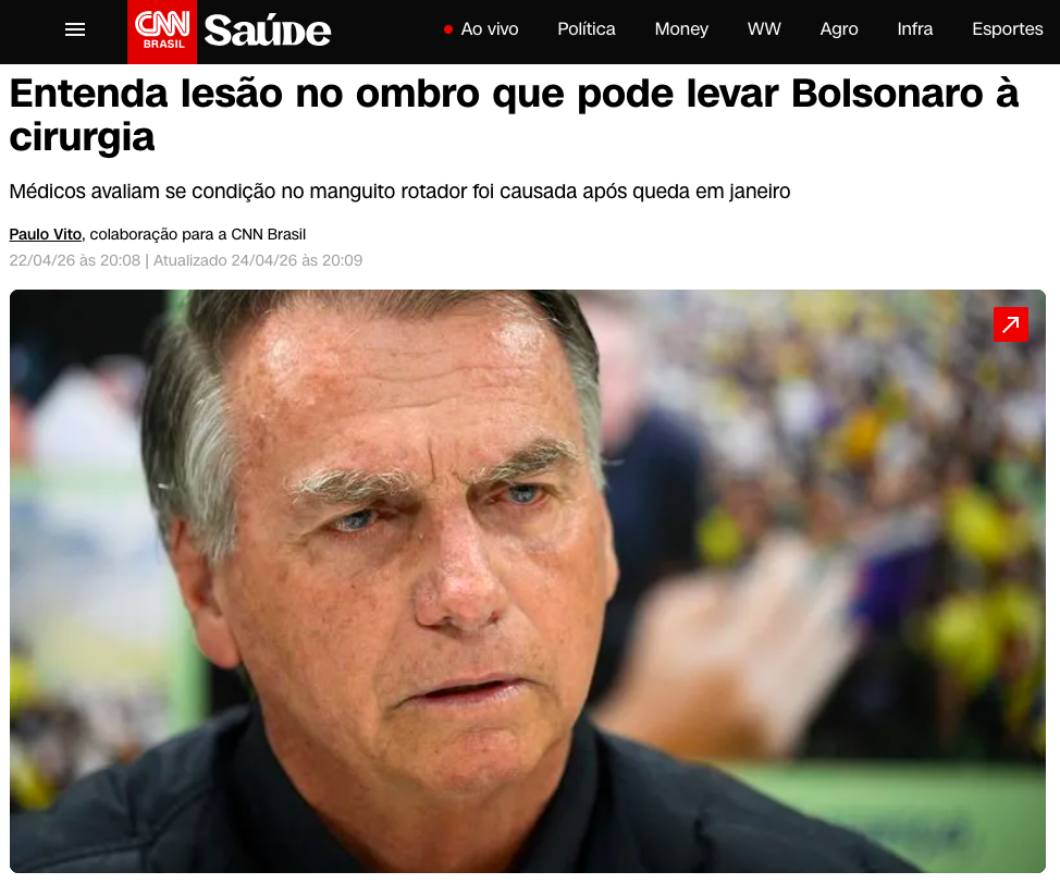 O quadro de saúde do presidente Jair Bolsonaro voltou a ser pauta médica nesta semana. Após queixas recorrentes de desconforto e perda de força em um dos braços, exames de imagem apontaram uma lesão no ombro que, segundo sua equipe médica, apresenta indícios de necessidade cirúrgica. A condição, comum em pacientes que sofrem traumas ou desgaste progressivo, tem impactado a rotina do político.