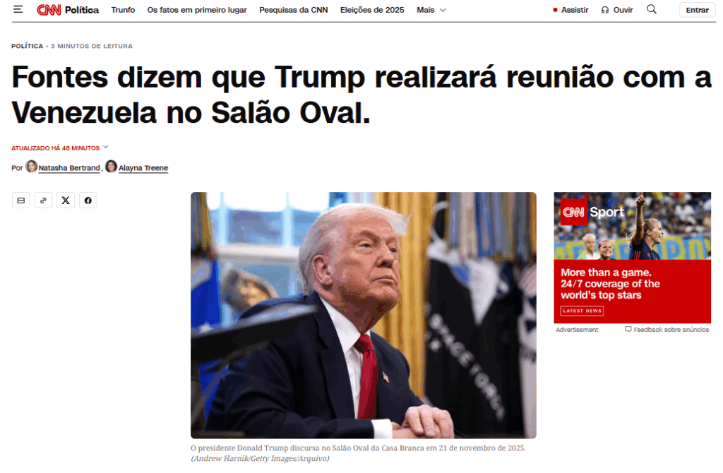 De acordo com a CNN, participam do encontro o secretário de Defesa, Pete Hegseth, o secretário de Estado, Marco Rubio, e outros nomes de peso do governo.