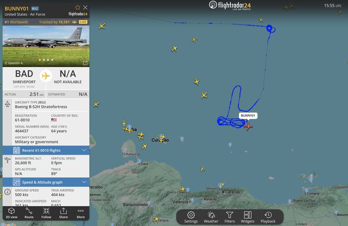 4-No mesmo dia, bombardeiros dos EUA sobrevoaram uma região muito próxima do território venezuelano.