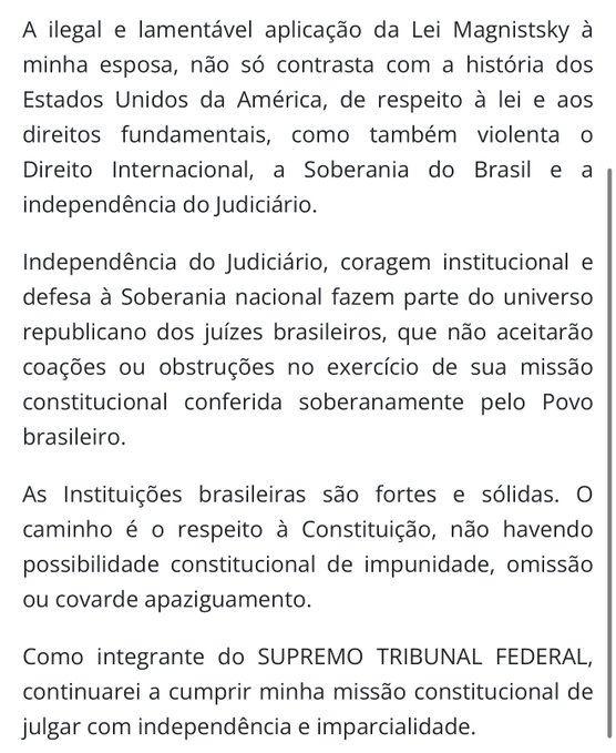 Veja o que disse Moraes: