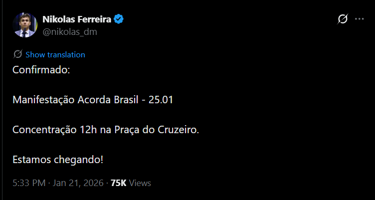NIKOLAS CONFIRMOU O LOCAL DA CONCENTRAÇÃO EM BRASPÍLIA: