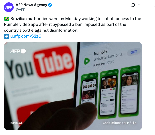 O Rumble, conhecido por ser uma alternativa mais aberta ao YouTube e por hospedar conteúdos conservadores, críticos ao establishment e que frequentemente são removidos de outras grandes plataformas, enfrenta agora o mesmo destino que sofreu em regimes de controle rígido da informação.