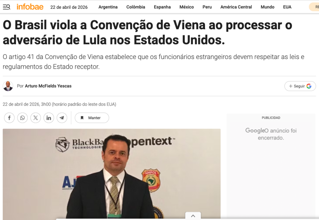 Um novo embate jurídico de proporções internacionais coloca o governo brasileiro sob os holofotes nesta quarta-feira (22). O ex-embaixador e analista político Arturo McFields levantou graves acusações contra a gestão do petista Lula, apontando que o uso de mecanismos judiciais para atingir opositores fora das fronteiras brasileiras fere tratados globais de direitos e diplomacia.