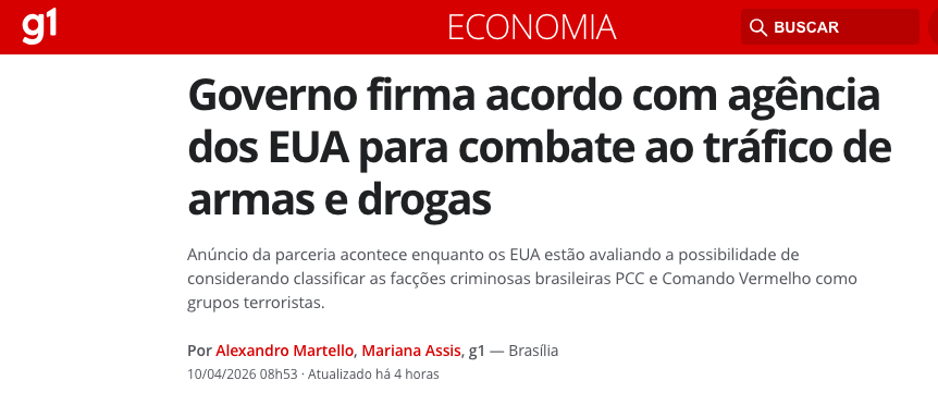 O governo federal anunciou nesta sexta-feira (10 de abril de 2026) a conclusão de uma importante parceria entre a Receita Federal e o U.S. Customs and Border Protection (CBP), agência de fronteiras dos Estados Unidos. O objetivo principal é intensificar o combate ao crime organizado transnacional, com foco no tráfico internacional de armas e entorpecentes, de acordo com a matéria do G1.
