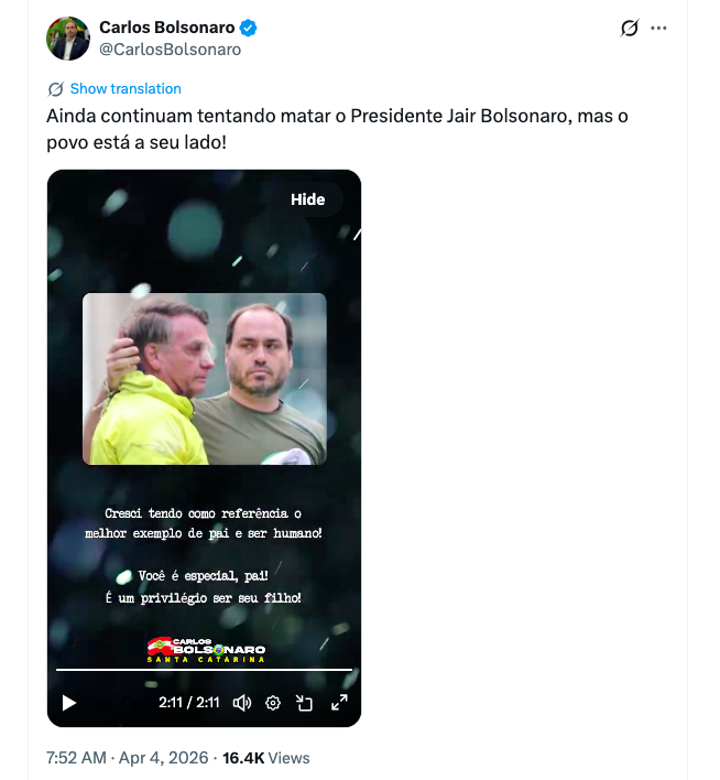 O filho do presidente tem usado as redes para denunciar uma perseguição sistemática contra Bolsonaro, incluindo obstáculos judiciais para tratamentos médicos e restrições impostas durante o regime domiciliar.