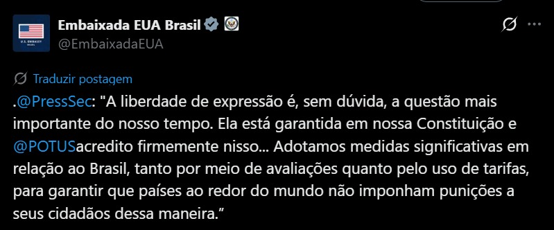 A Embaixada dos EUA no Brasil respostou a fala de Leavitt confira abaixo: