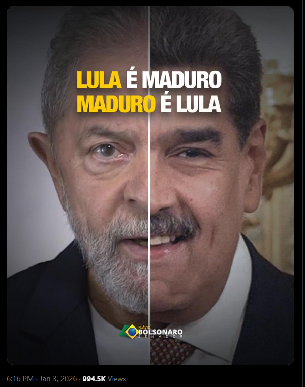A postagem foi feita logo após a notícia da captura de Maduro por forças dos Estados Unidos.