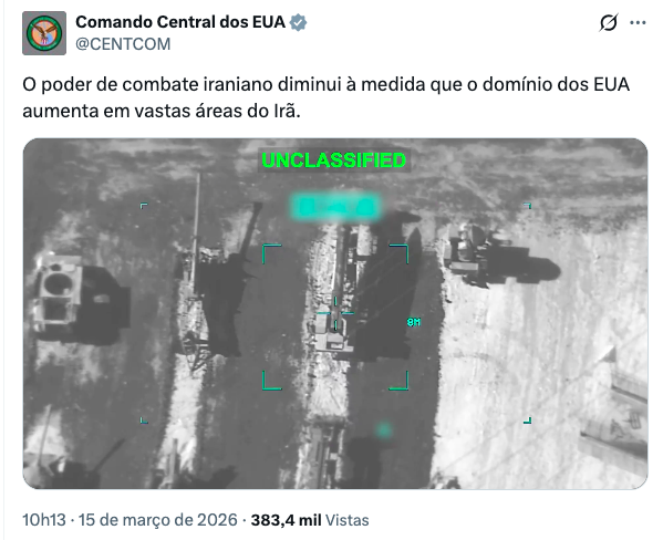 A nota do CENTCOM destaca que as operações conjuntas com Israel têm causado “degradação significativa” das capacidades ofensivas do Irã, com destruição de hangares de caças, depósitos de mísseis, radares e infraestruturas críticas de exportação de petróleo.