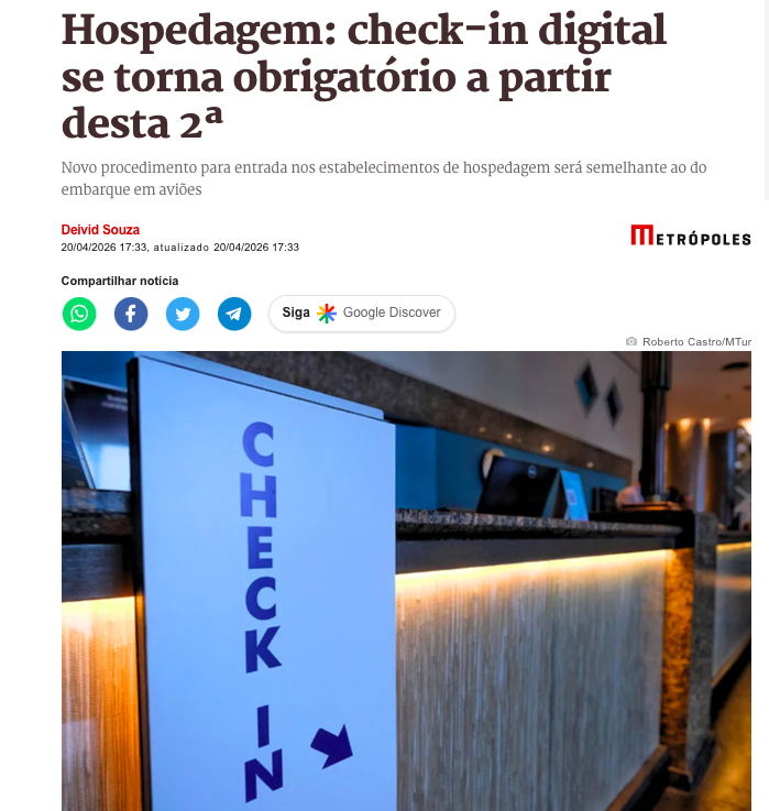 Hotéis, pousadas e hostels de todo o Brasil passaram a registrar a chegada dos clientes de forma totalmente eletrônica desde o dia 20 de abril de 2026. A medida federal transforma o check-in tradicional em um processo digital, semelhante ao que já é feito no embarque de aviões.