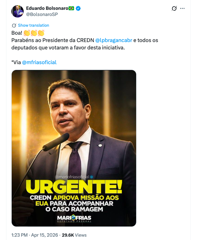 Eduardo Bolsonaro se manifestou sobre a iniciativa, confira: