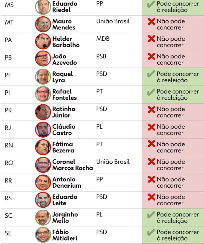 Desses, quatro já sinalizam intenção de concorrer à Presidência da República, enquanto pelo menos seis planejam migrar para o Senado Federal.A janela de definição das candidaturas majoritárias ocorre entre julho e agosto de 2026.
