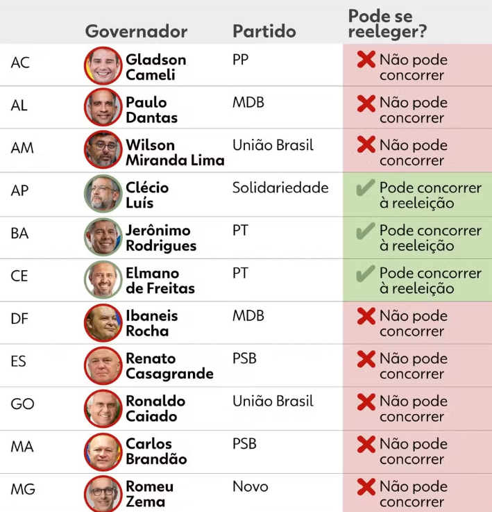 As eleições estaduais de 2026 prometem uma renovação significativa nos palácios dos governos, já que 18 dos 27 governadores atuais estão impedidos pela Constituição de disputar a reeleição consecutiva.