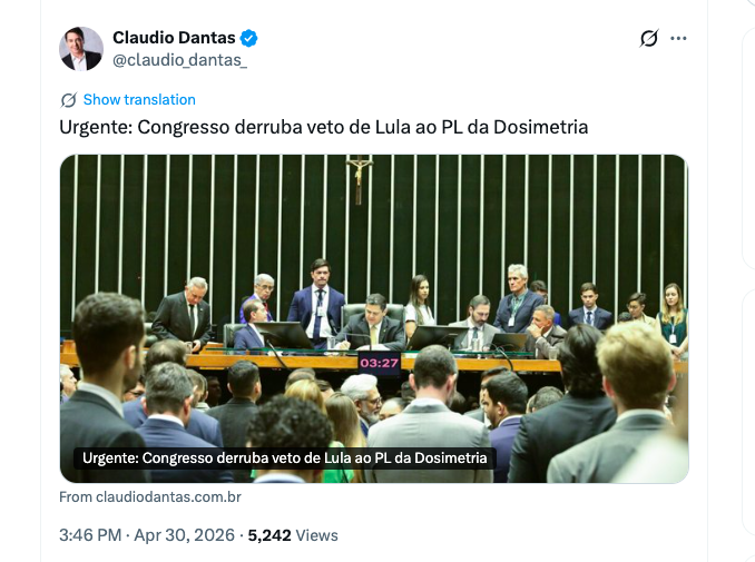 O Congresso Nacional derrubou nesta quinta-feira (30) o veto integral do petista Lula da Silva ao PL da Dosimetria (PL 2.162/2023). A decisão representa mais uma derrota significativa para o governo federal no Legislativo.