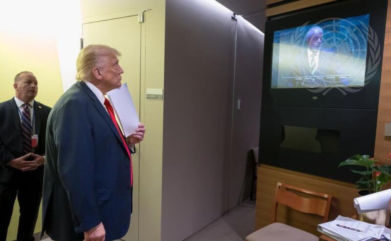 O perfeil oficial da ONU publicou uma imagem de Donald Trump assistindo o discurso de Lula em uma sala privada antes de discursar na ONU: