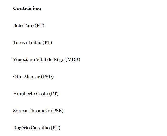 Antes da votação, o colegiado também teve trocas na sua composição. Com as mudanças, aliados do governo passaram a ocupar vagas de titulares. A base governista orientou pela rejeição.