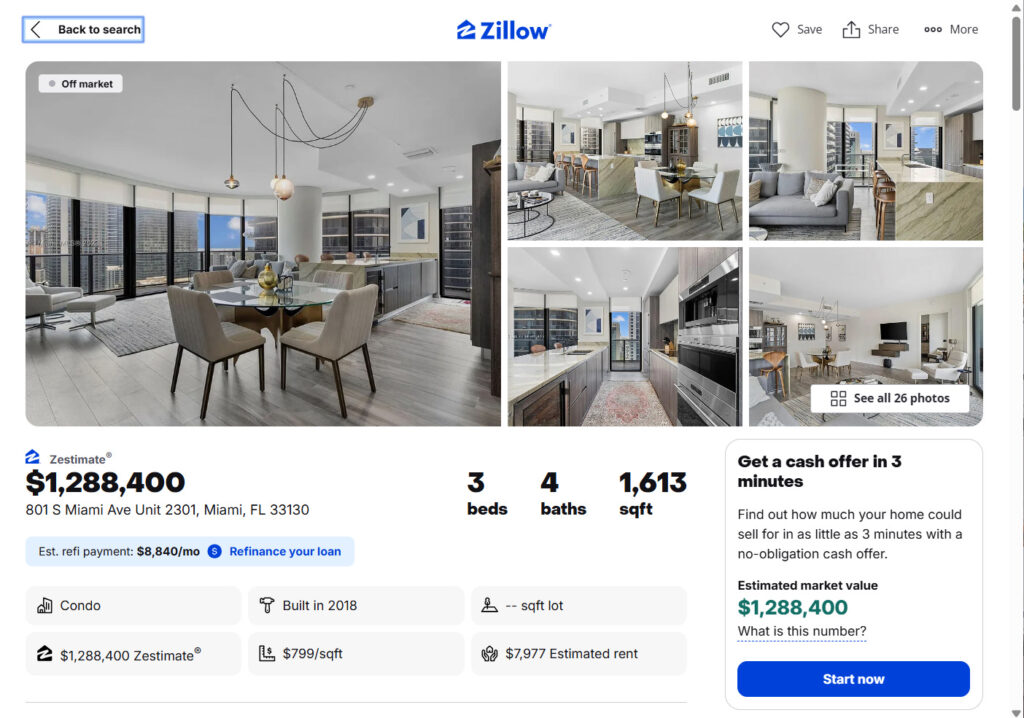 O apartamento de três quartos e quatro banheiros, com cerca de 150 m², vista panorâmica para a skyline de Miami e terraço externo, está avaliado em aproximadamente US$ 1,288 milhão (cerca de R$ 7,3 milhões). O imóvel pertence a uma empresa americana (PH1500 LLC) e foi alugado por cerca de US$ 8.750 mensais (R$ 48 mil), valor incompatível com o salário de um delegado da PF em missão no exterior.
