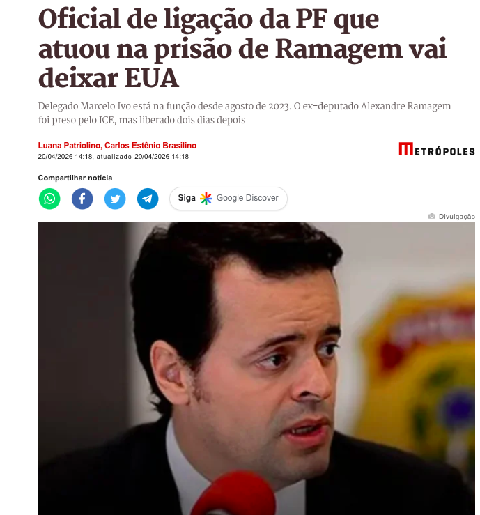A saída de Marcelo Ivo ocorre enquanto as autoridades brasileiras ainda avaliam os próximos passos no caso Ramagem, que está nos EUA sem passaporte válido e é considerado foragido da Justiça brasileira.