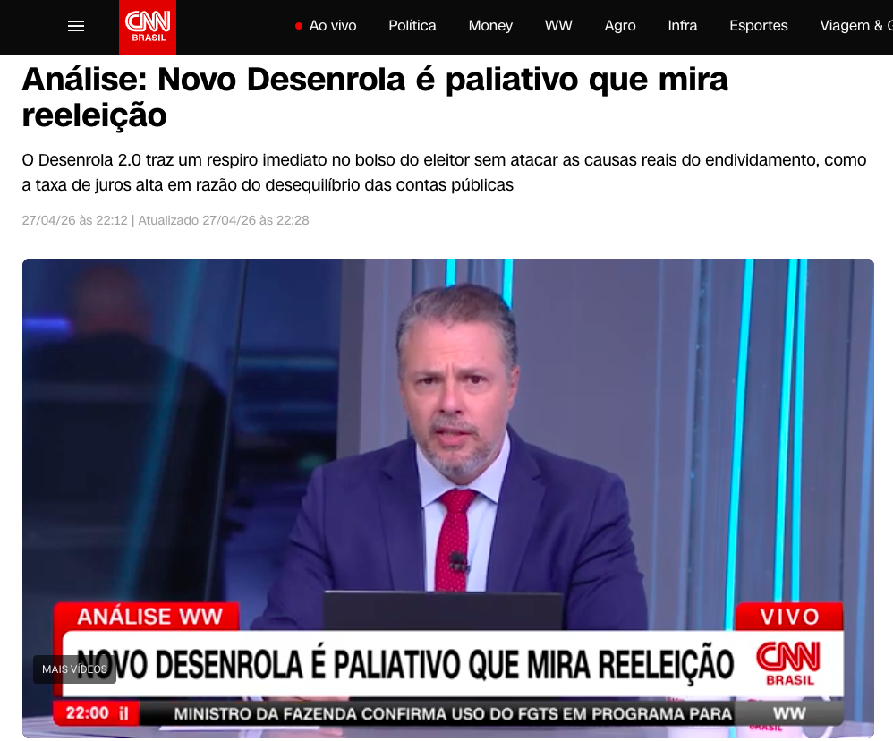 O governo federal anunciou na segunda-feira (27) o Desenrola 2.0, mais uma edição do programa de refinanciamento de dívidas. Segundo análise publicada pela CNN Brasil, trata-se de uma medida com forte viés eleitoreiro que oferece um respiro imediato aos devedores, mas não enfrenta os problemas estruturais que levaram o Brasil a registrar recordes de endividamento.