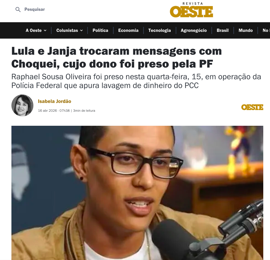 A prisão do dono da página de fofocas Choquei, Raphael Sousa Oliveira, pela Polícia Federal reacendeu o histórico de aproximação entre ele, o petista Lula da Silva e Janja Lula Silva, de acordo com a matéria da Revista Oeste.