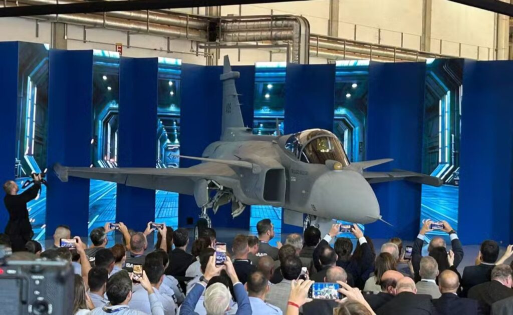 Embraer marca história: primeiro caça Gripen F-39E montado no Brasil é apresentado