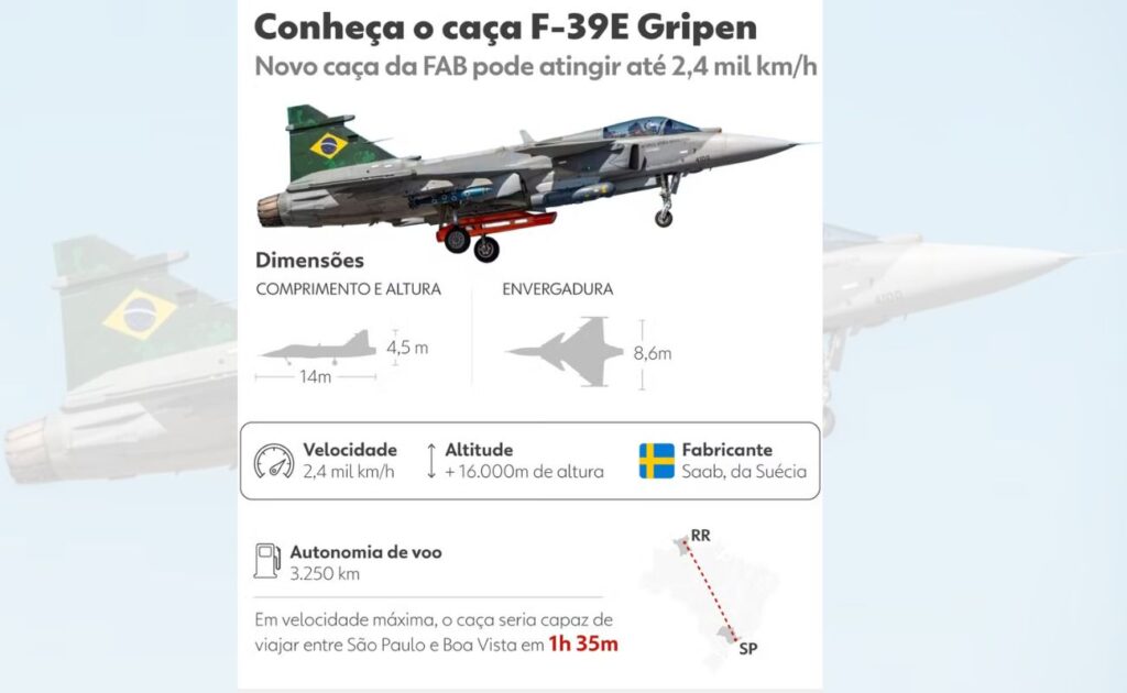 O Gripen F-39E, desenvolvido em parceria com a sueca Saab, integra o programa de modernização da Força Aérea Brasileira (FAB). A transferência de tecnologia sueca permitiu que engenheiros brasileiros participassem diretamente da produção, consolidando o Brasil entre os poucos países capazes de fabricar caças de alta tecnologia.