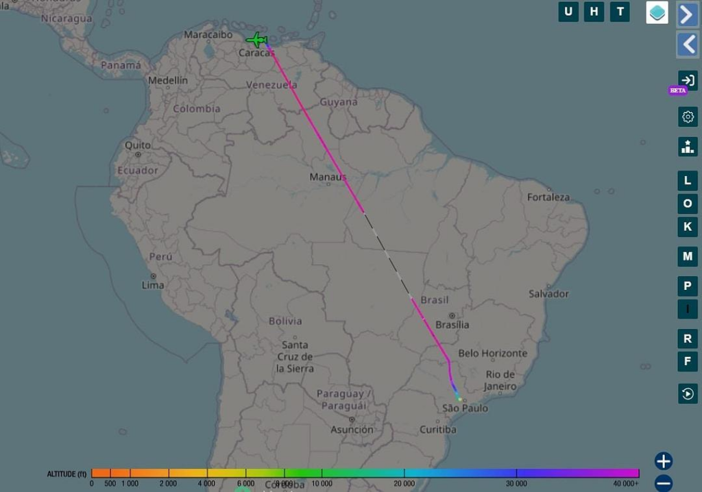 Um jato de propriedade da J&F, dos irmãos Batista, donos do frigorífico JBS, aterrissou em Caracas, na Venezuela às 5h14 da manhã (horário de Brasília) do último domingo (23). O avião passou o dia na capital da Venezuela, retornando às 7h53 da segunda-feira para o Catarina, aeroporto dedicado à aviação executiva no interior de São Paulo.