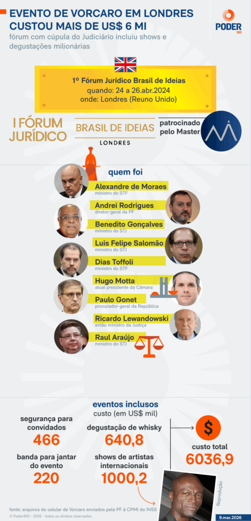 Uma reunião privada ocorrida em Londres reuniu figuras de alto escalão do Judiciário e do Legislativo brasileiro, além do procurador-geral da República, em evento bancado pelo empresário Daniel Vorcaro, ex-dono do Banco Master e alvo central da Operação Compliance Zero.