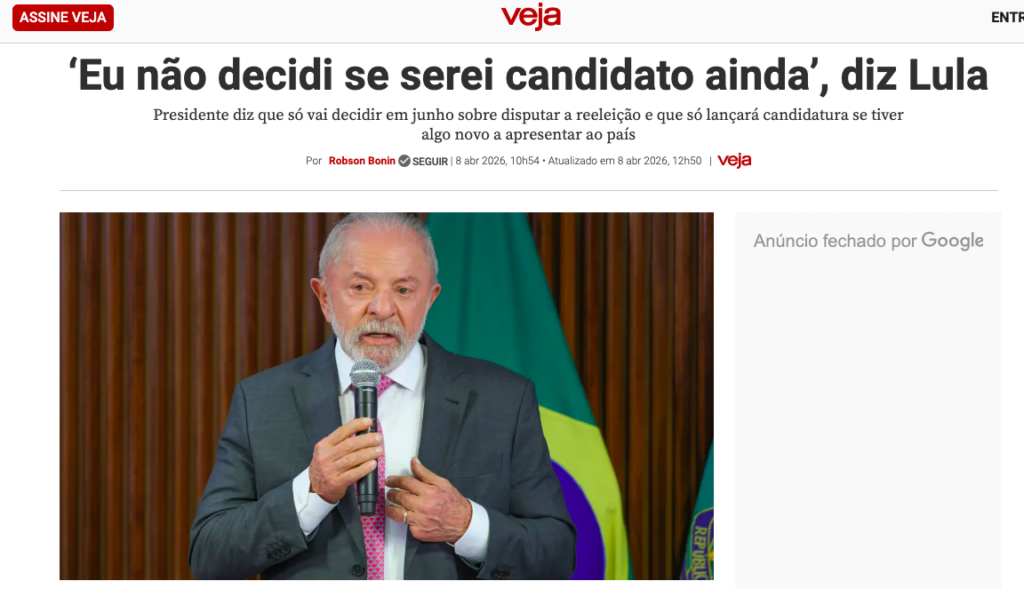 O petista Lula da Silva afirmou que ainda não decidiu se será candidato à reeleição nas eleições presidenciais de 2026, de acordo com a matéria da Revista Veja.