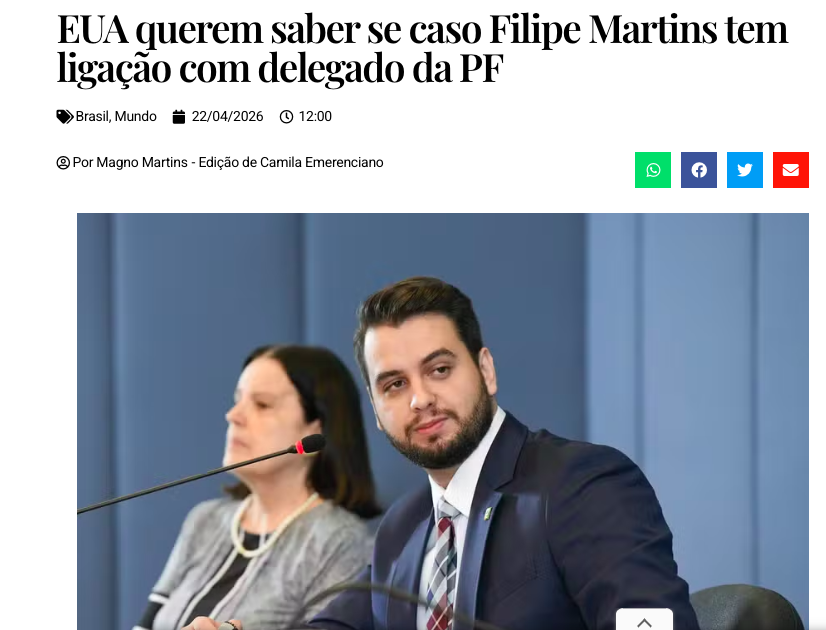 O Departamento de Justiça e órgãos de inteligência dos Estados Unidos elevaram o tom na busca por informações sobre processos judiciais brasileiros que possuem reflexos em solo americano. O foco da vez é o caso do ex-assessor da Presidência, Filipe Martins, e sua possível relação com membros da cúpula da Polícia Federal (PF).