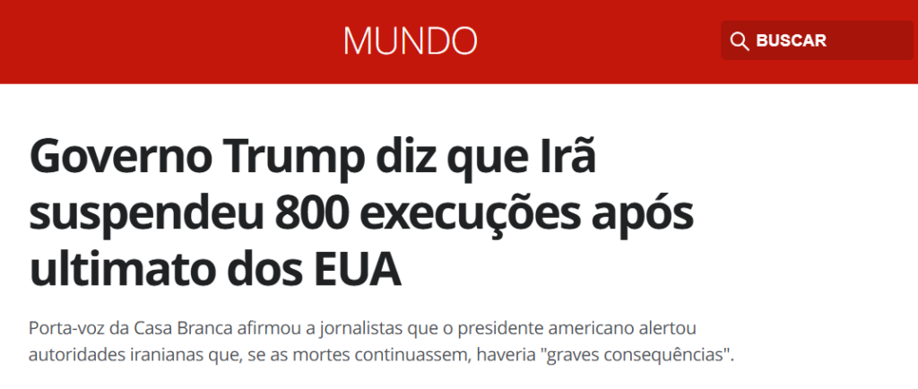 Trump tem advertido repetidamente sobre uma possível intervenção em apoio aos manifestantes no Irã, onde o establishment religioso vem reprimindo com rigor os protestos nacionais desde 28 de dezembro.