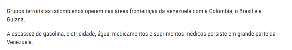 O texto ainda afirma que ‘grupos terroristas colombianos operam nas áreas fronteiriças da Venezuela com a Colômbia, o Brasil e a Guiana’.