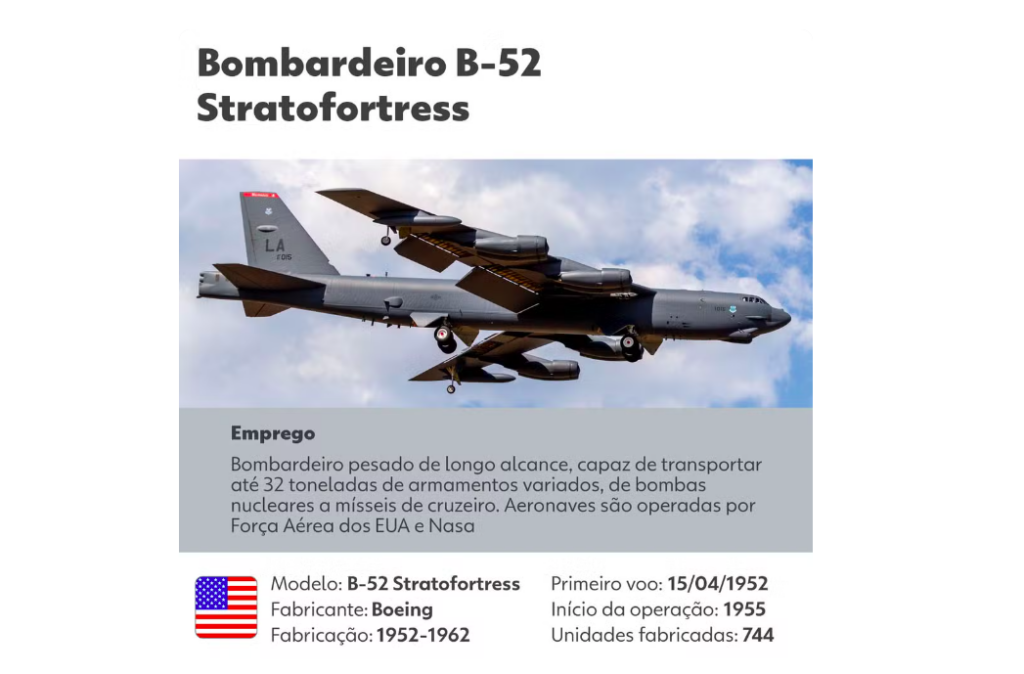 A informação foi revelada inicialmente pelo jornal The New York Times. Um dia antes, o presidente Donald Trump havia compartilhado um vídeo de uma grande explosão em Isfahan, supostamente em um depósito de munições, embora não esteja confirmado se os B-52 participaram diretamente daquela ação.