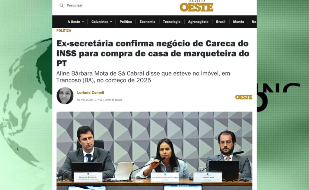 A ex-secretária pessoal de Antônio Carlos Camilo Antunes, o “Careca do INSS”, Aline Bárbara Mota de Sá Cabral, confirmou em depoimento à CPMI do INSS (2 de março de 2026) que o lobista negociou a compra de um imóvel em Trancoso (BA) com Danielle Miranda Fonteles, ex-marqueteira do PT.