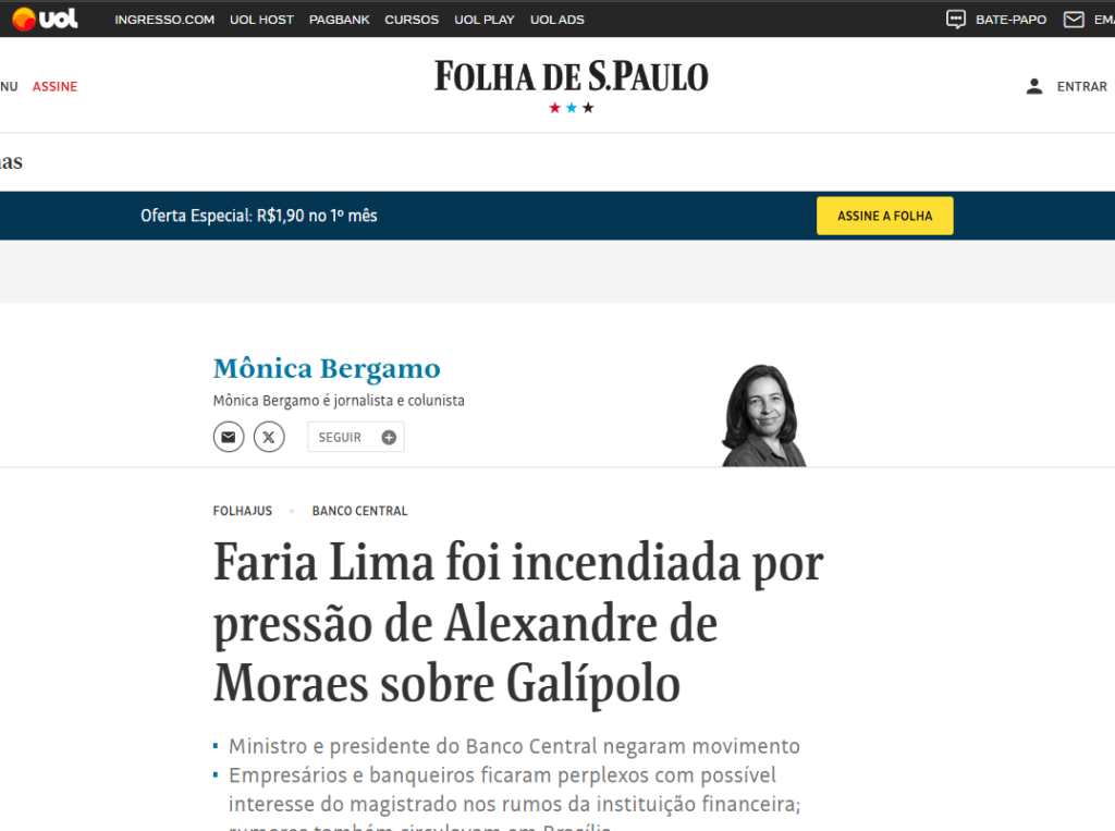 Galípolo e Moraes não se pronunciaram publicamente até o momento.
