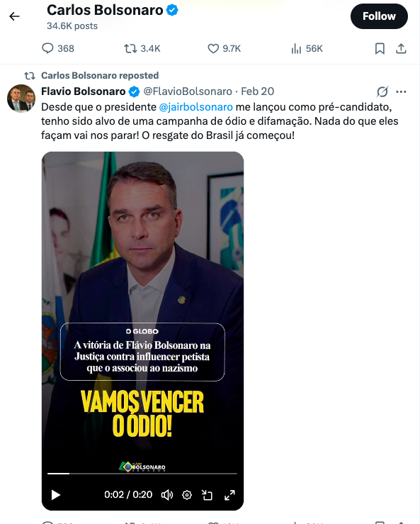 Recentemente, Flávio obteve vitórias importantes na Justiça, reforçando sua defesa contra calúnias. Em uma decisão proferida na quinta-feira (18), o Tribunal de Justiça do Rio de Janeiro condenou um influenciador petista a pagar indenização e publicar retratação por associar Flávio ao nazismo em postagens nas redes sociais. A sentença destacou o caráter difamatório e o dano à honra, obrigando a remoção imediata do conteúdo.
