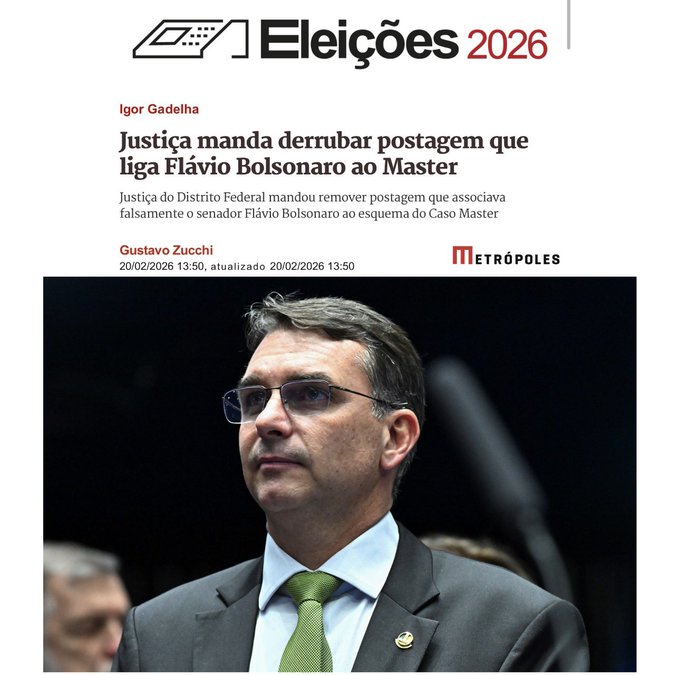 Outra conquista veio na sexta-feira (19), quando a Justiça determinou a derrubada de uma postagem que ligava Flávio de forma infundada ao escândalo do Banco Master – caso de fraudes financeiras envolvendo Daniel Vorcaro. A liminar, concedida em ação movida pelo senador, classificou a publicação como “propaganda negativa falsa” e impôs multa diária por descumprimento, protegendo sua reputação em meio ao ano pré-eleitoral.