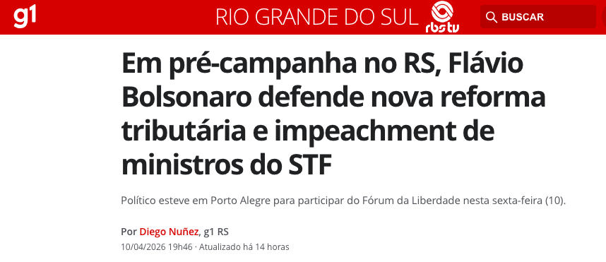 Em plena pré-campanha eleitoral, o senador Flávio Bolsonaro (PL) esteve em Porto Alegre na sexta-feira (10) para participar do Fórum da Liberdade. Durante o evento, o pré-candidato à Presidência da República pelo PL defendeu duas medidas polêmicas que podem marcar sua plataforma: uma nova atualização da reforma tributária e o impeachment de ministros do Supremo Tribunal Federal (STF), de acordo com a matéria do G1.
