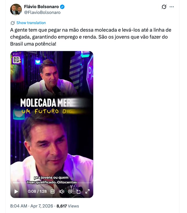 Em publicação nas redes sociais, Flávio Bolsonaro enfatizou a importância de preparar a nova geração para o mercado de trabalho, confira: