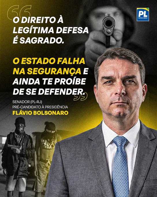 O Partido Liberal (PL) divulgou postagem oficial reforçando a defesa do direito à legítima defesa em meio ao aumento da criminalidade e à percepção de ineficiência do poder público na garantia da segurança nas ruas.