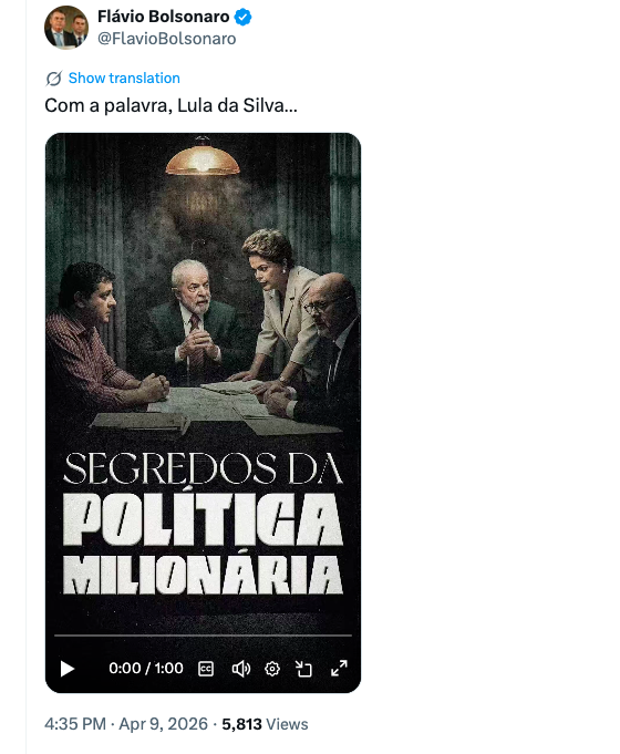 Em publicação nas redes sociais nesta quinta-feira (9 de abril de 2026), Flávio Bolsonaro compartilhou conteúdo relacionado à Operação Lava Jato e ao envolvimento de figuras do PT no escândalo, que desviou bilhões de reais dos cofres públicos por meio de contratos superfaturados com a empreiteira.