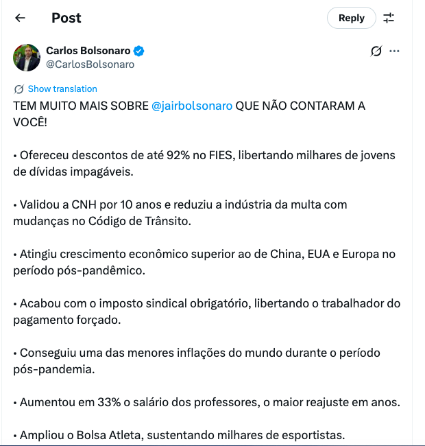 Carlos Bolsonaro, posta no X: