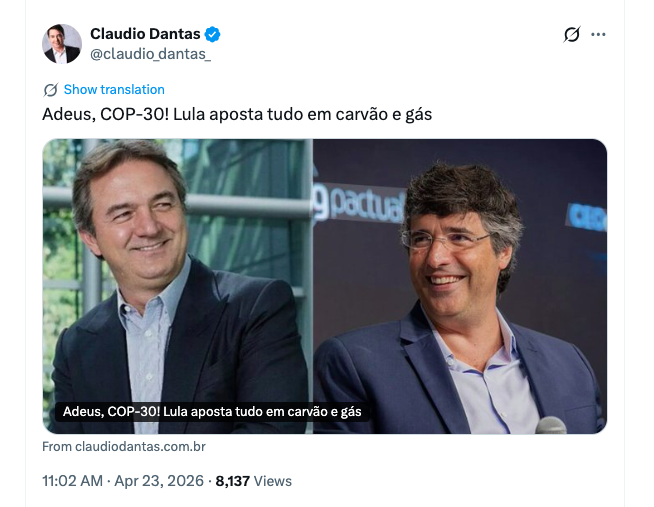 Novas diretrizes energéticas focadas em combustíveis fósseis geram crise de narrativa para a cúpula do clima em Belém