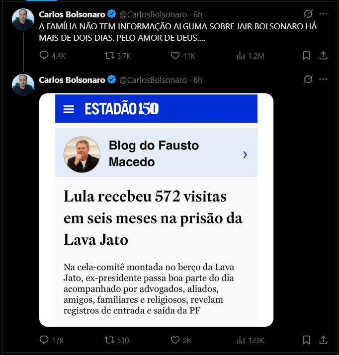 “A FAMÍLIA NÃO TEM INFORMAÇÃO ALGUMA SOBRE JAIR BOLSONARO HÁ MAIS DE DOIS DIAS. PELO AMOR DE DEUS….”