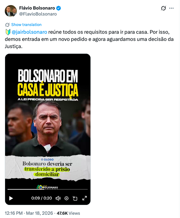 Flávio Bolsonaro se manifestou sobre o pedido de domiciliar protocolado para Bolsonaro, confirma: