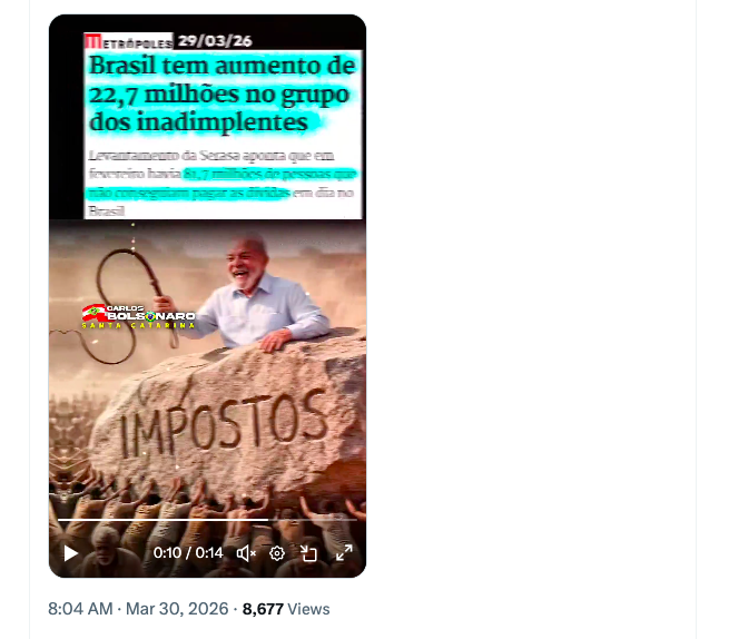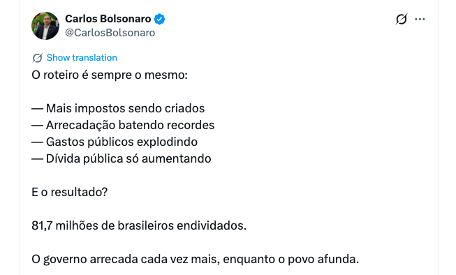 Carlos Bolsonaro reage: O roteiro é sempre o mesmo; O governo arrecada cada vez mais, enquanto o povo afunda.