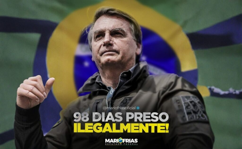 Uma prisão injusta e ilegal. Não é apenas um ataque a um homem, é um aviso do regime: quem ousar erguer a voz contra o sistema, será esmagado. Não se trata de processo, de lei, de justiça. Trata-se de poder nu, sem máscaras. É a velha tática dos tiranos: humilhar um líder para amedrontar o povo. Jair Bolsonaro, assim como tantos presos e exilados políticos, é o alvo escolhido para servir de exemplo. Não por um crime cometido, mas por ter desafiado o partido único da burocracia, desnudado a farsa da elite cultural, exposto o teatro da corrupção institucionalizada. Libertem Jair Bolsonaro e todos os presos políticos! Chega de tanta injustiça e covardia!, escreveu o Deputado Federal Mario Frias nas redes sociais