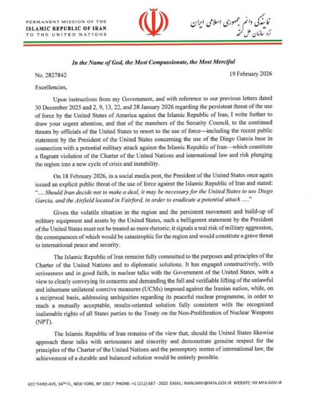 O embaixador Iravani criticou declarações “beligerantes” americanas, argumentando que elas representam “uma grave ameaça à paz e à segurança internacionais” e poderiam ter “consequências catastróficas para a região”. A carta pede ao Conselho de Segurança e ao Secretário-Geral que atuem “sem demora” para que os EUA cessem imediatamente as “ameaças ilegais de uso da força”.