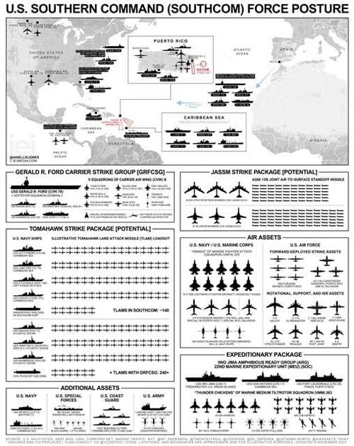 A Marinha dos EUA anunciou a chegada do Grupo de Ataque 12 do superporta-Aviões Gerald R. Ford, composto pelos navios USS Gerald R. Ford (CVN-78), USS Mahan (DDG-72), USS Winston S. Churchill (DDG-81) e USS Bainbridge (DDG-96), juntamente com o USNS Supply (T-AOE-6), à área de responsabilidade do Comando Sul dos EUA (SOUTHCOM), após ter recebido ordens para se deslocar para a região no mês passado pelo Secretário de Guerra Pete Hegseth.