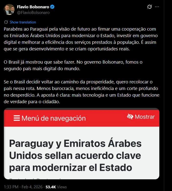 Nesta quarta-feira 04/02, falou sobre o tema parabenizando o Paraguai, confira: